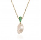 Колье с жемчугом и изумрудом из желтого золота 585 пробы (арт. 285641)