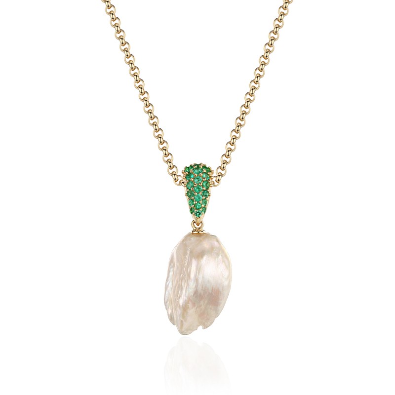 Колье с жемчугом и изумрудом из желтого золота 585 пробы можно купить в нашем интернет-магазине с доставкой по Москве, а также транспортными компаниями по всем городам России.