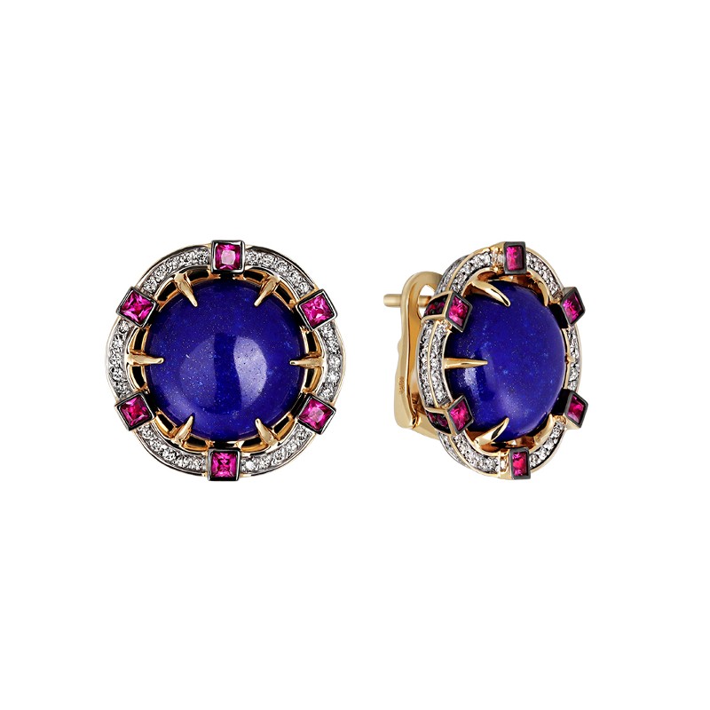 Серьги с бриллиантом, рубином и лазуритом из желтого золота 585 пробы можно купить в нашем интернет-магазине с доставкой по Москве, а также транспортными компаниями по всем городам России.