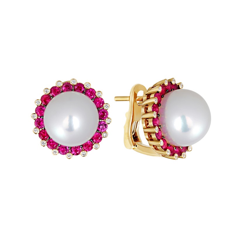 Серьги с жемчугом, бриллиантом и рубином из желтого золота 585 пробы можно купить в нашем интернет-магазине с доставкой по Москве, а также транспортными компаниями по всем городам России.