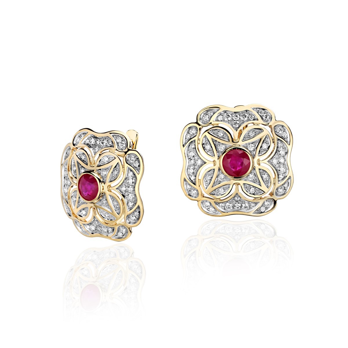 Серьги с бриллиантом и рубином из желтого золота 585 пробы можно купить в нашем интернет-магазине с доставкой по Москве, а также транспортными компаниями по всем городам России.