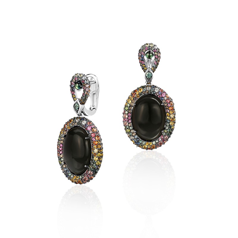 Отзывы о "Серьги с бриллиантом, сапфиром, турмалином и лунным камнем из белого золота 585 пробы (арт. 271586)"
