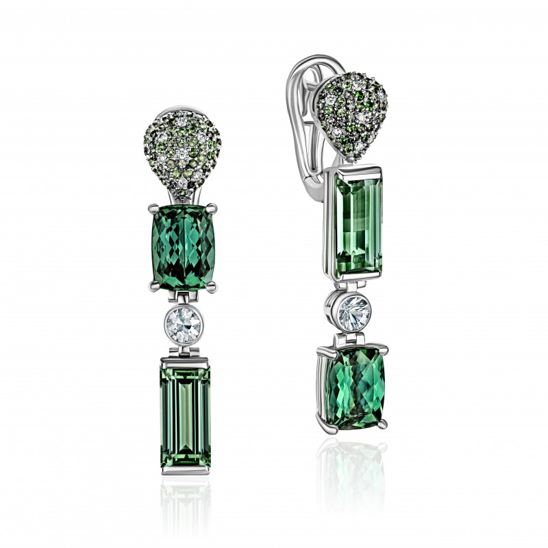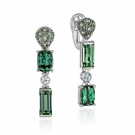Серьги с бриллиантом, сапфиром и турмалином из белого золота 585 пробы (арт. 287908)